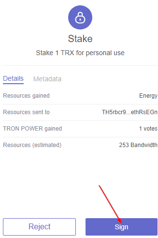 Открываем расширение TronLink в браузере, жмем кнопку «Stake».