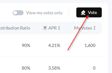 Появилась возможность вводить цифры, как раз под этой самой кнопкой. В списке позиций Вам необходимо найти «CryptoChain». И проголосовать за него. Он дает хороший процент за голоса, и самое главное, если не голосовать за других — дает еще бонусом накопительный процент. Обращаю внимание, что не нужно голосовать каждый день. Достаточно сделать это один раз и можно забыть. И так, нашли в графе «Name» «CryptoChain», самая правая колонка в этой же строке: «My Votes». Отдаем все имеющиеся голоса ему: