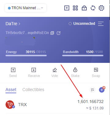 Рекомендую покупать примерно на $100 или больше. У меня на данный момент 1,601 TRX. После покупки Ваш баланс будет выглядеть примерно так: