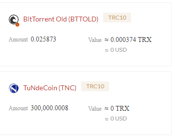 И там Вы увидите список валют на вашем балансе. Если Вам еще не начислили, то Вы увидите только TRX (и USDT, если есть). А если начислили, то будет что-то подобное:
